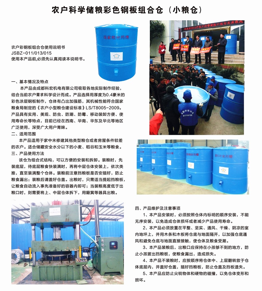 农户科学储粮彩色钢板组合仓